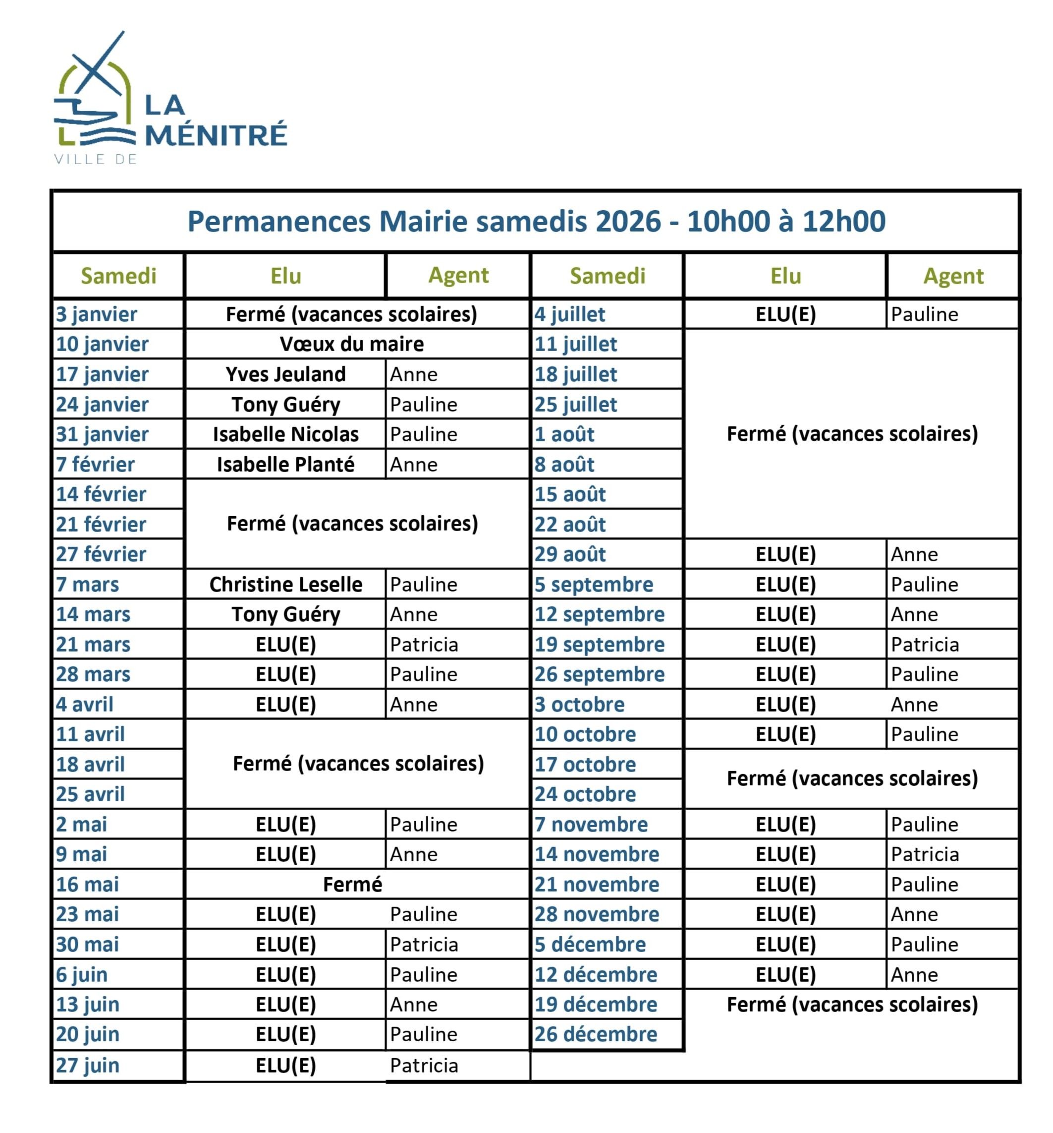 Rencontrez et échangez avec votre maire et les élus de La Ménitré chaque samedi de 10h à 12h en mairie (hors vacances scolaires).